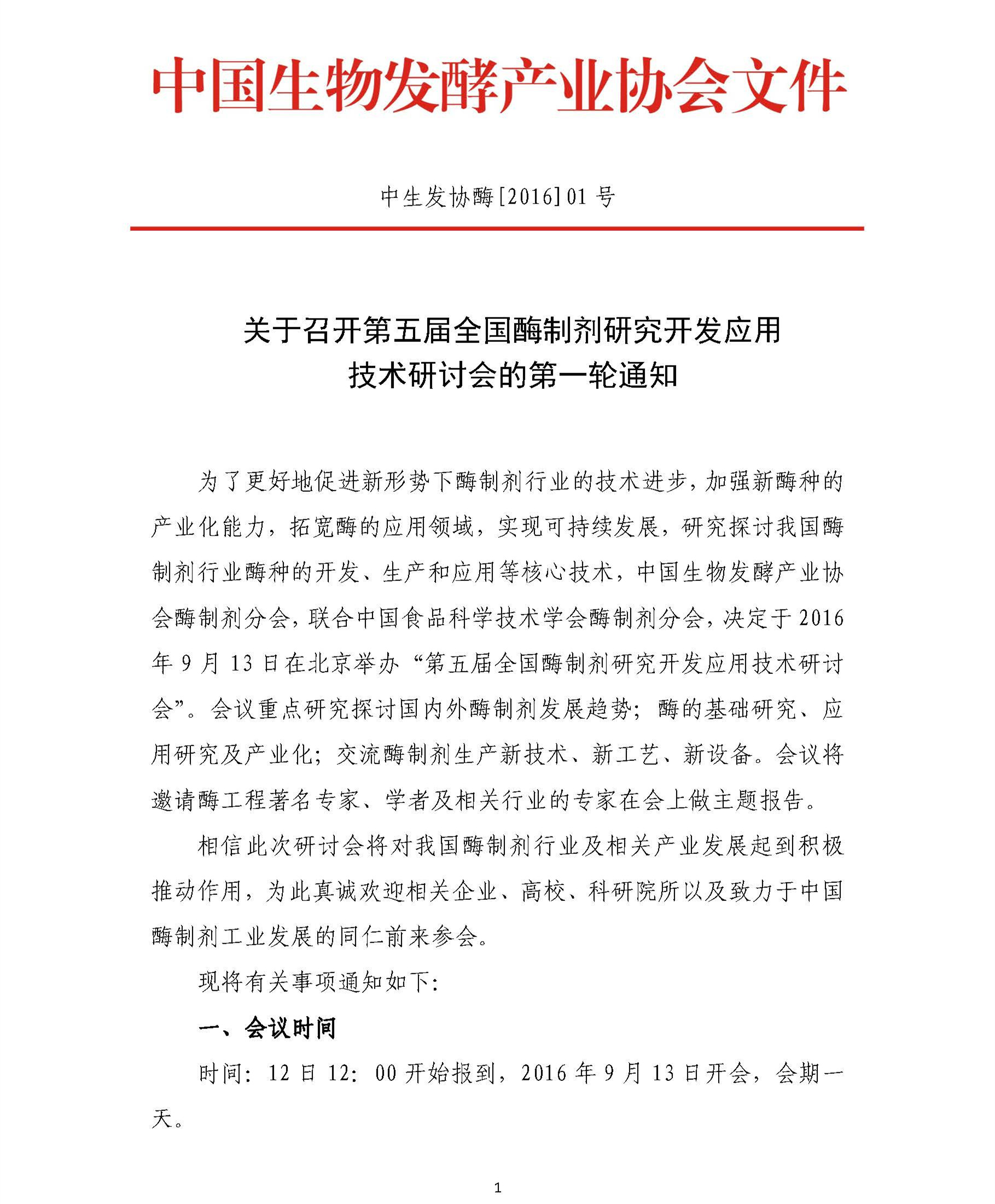 1、關于召開第五屆全國酶制劑研究開發應用技術研討會的第一輪通知