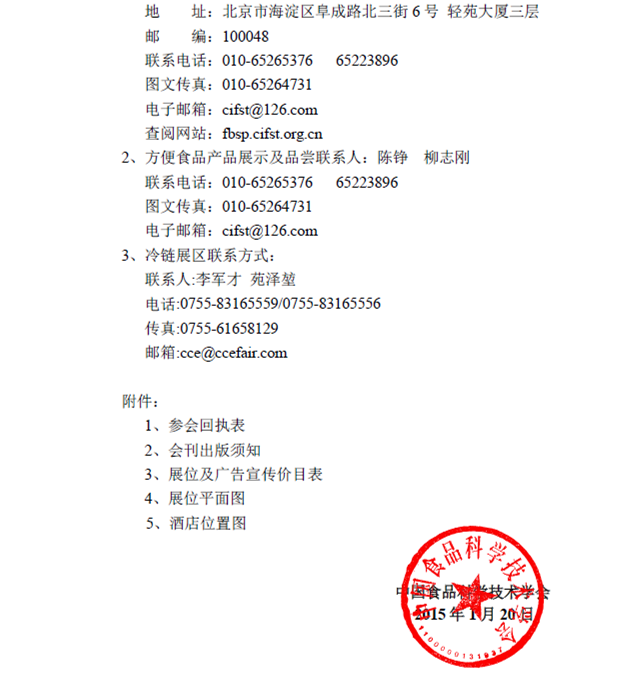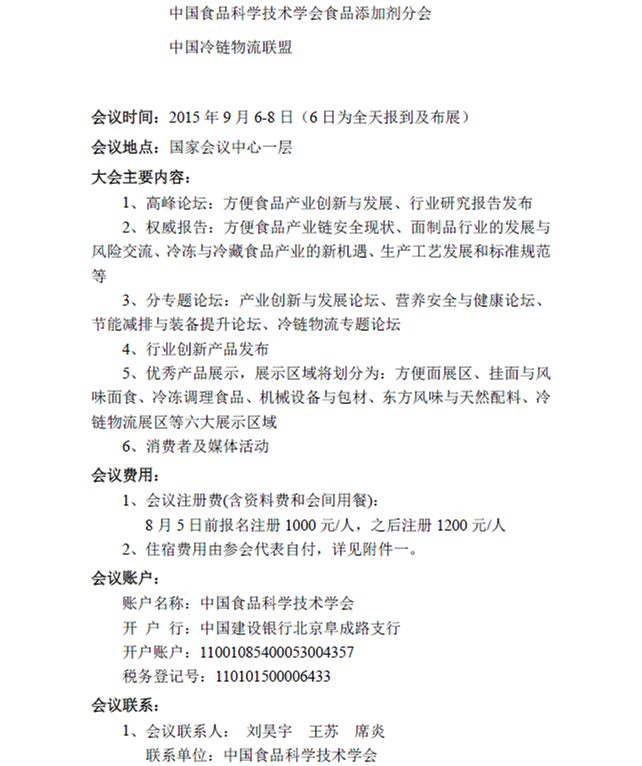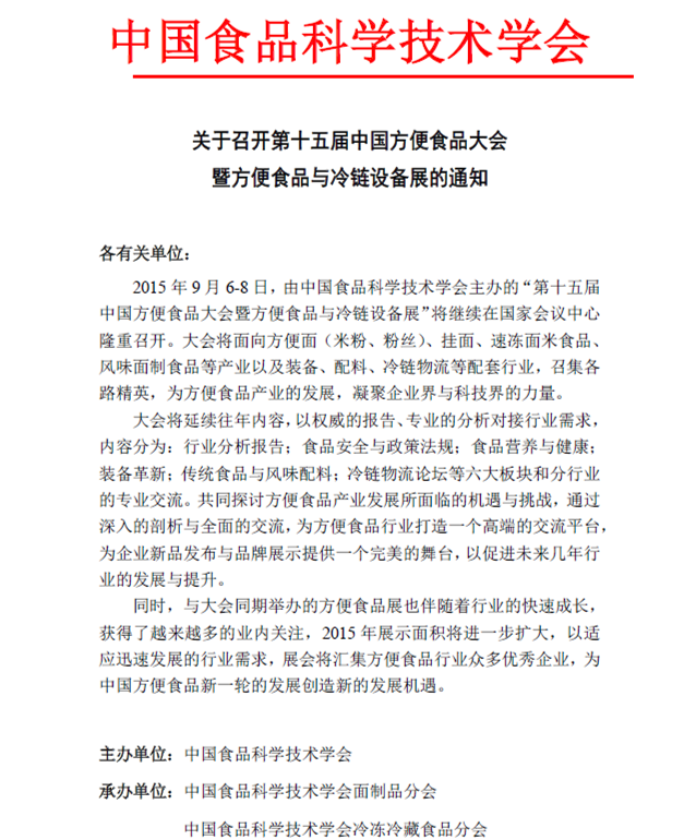 關(guān)于召開第十五屆中國方便食品大會暨方便食品與冷鏈設(shè)備展的通知